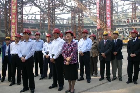 中共中央总书记、国家主席、中央军委主席胡锦涛同志视察国家体育场施工现场