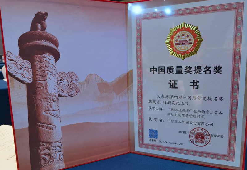 诚信为本专业服务 官网重工荣膺第四届中国质量奖提名奖